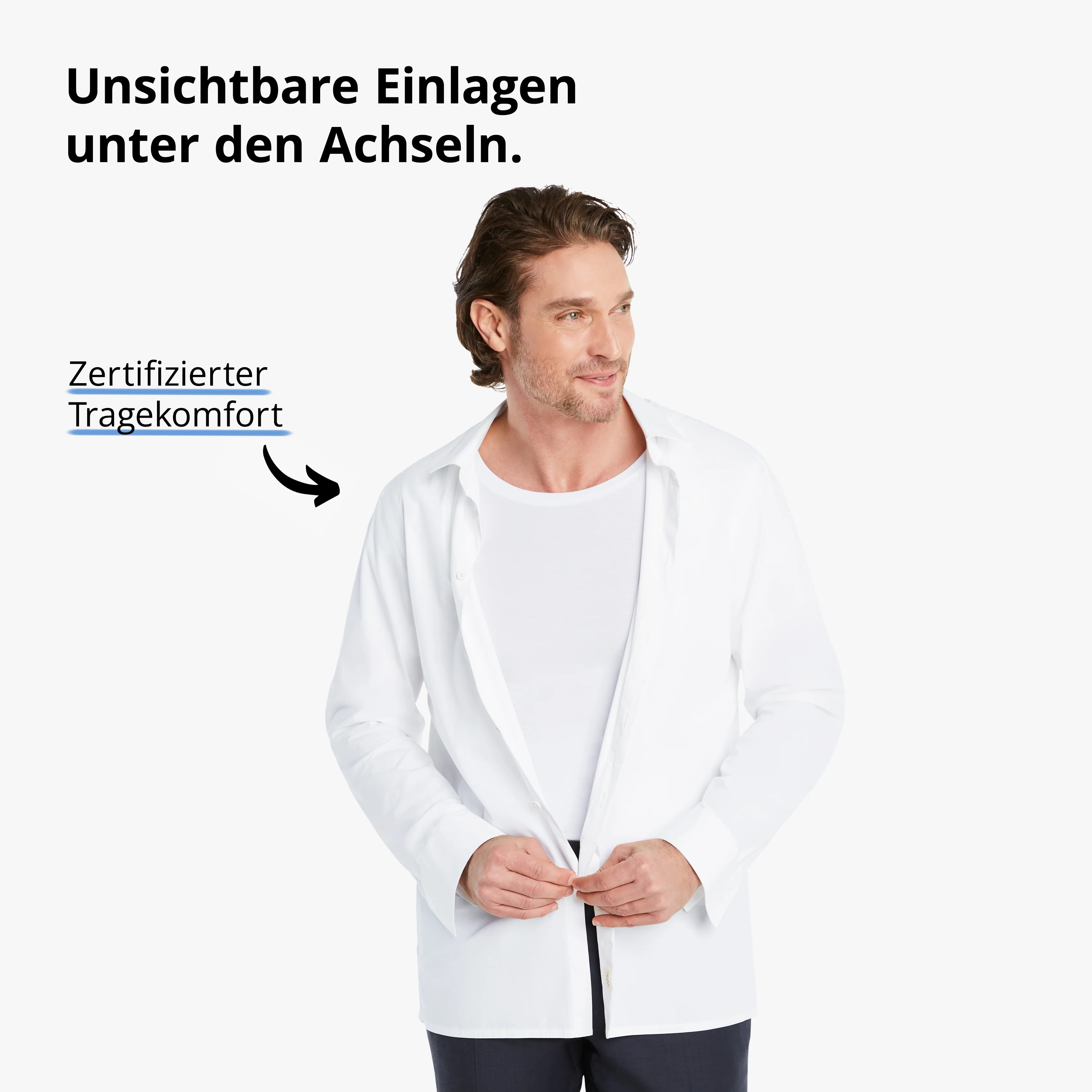 100% Schutz vor Schweißflecken unter den Achseln: Innovative Einlagen unter den Achseln, die effektiv Schweißflecken verhindern und dabei kaum spürbar sind.